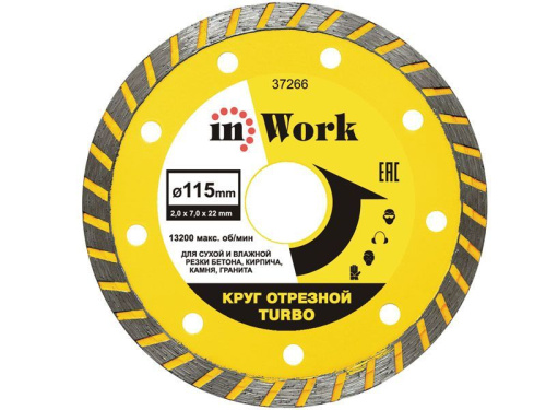 Диск алмазный (круг) Тurbo 115х2х7х22 мм, InWork (37266)